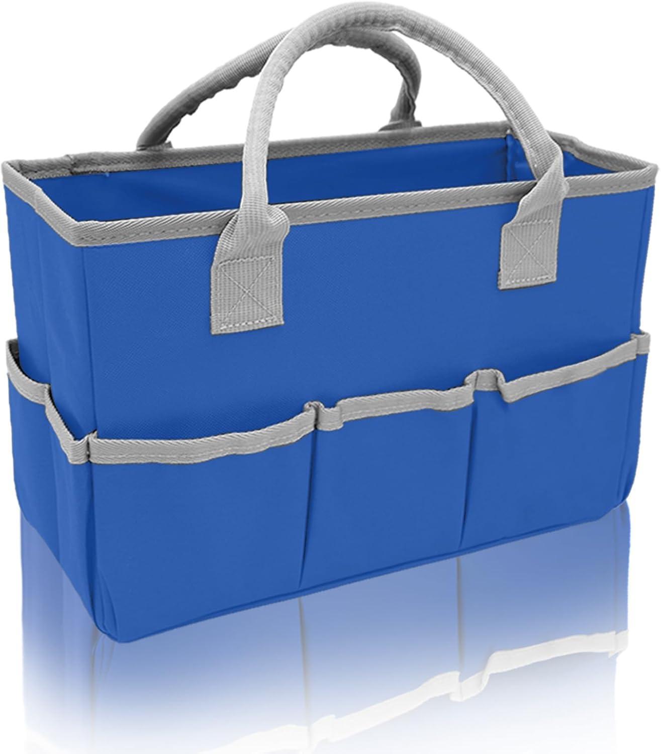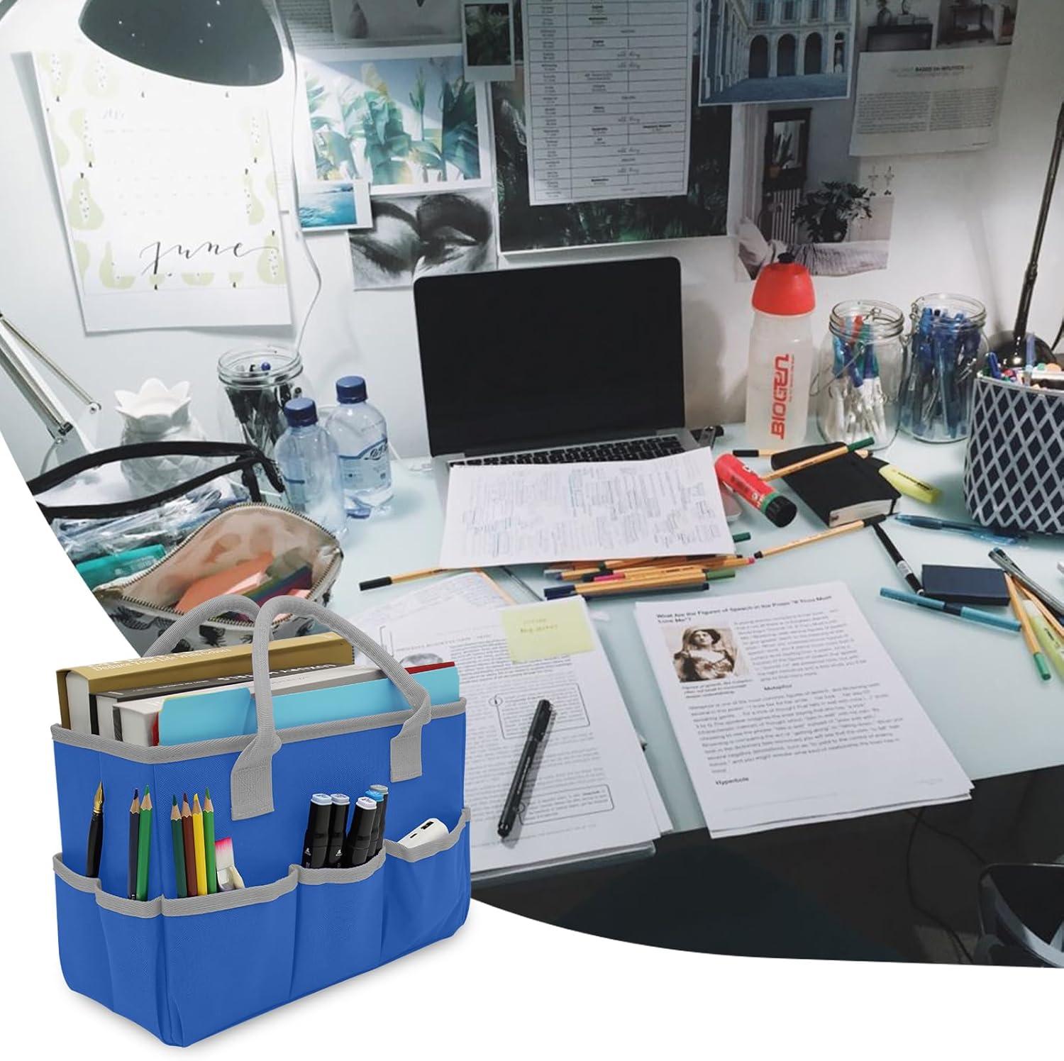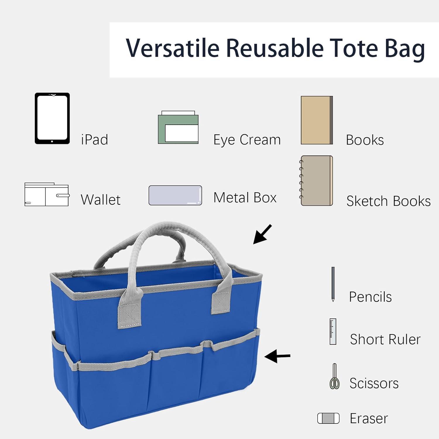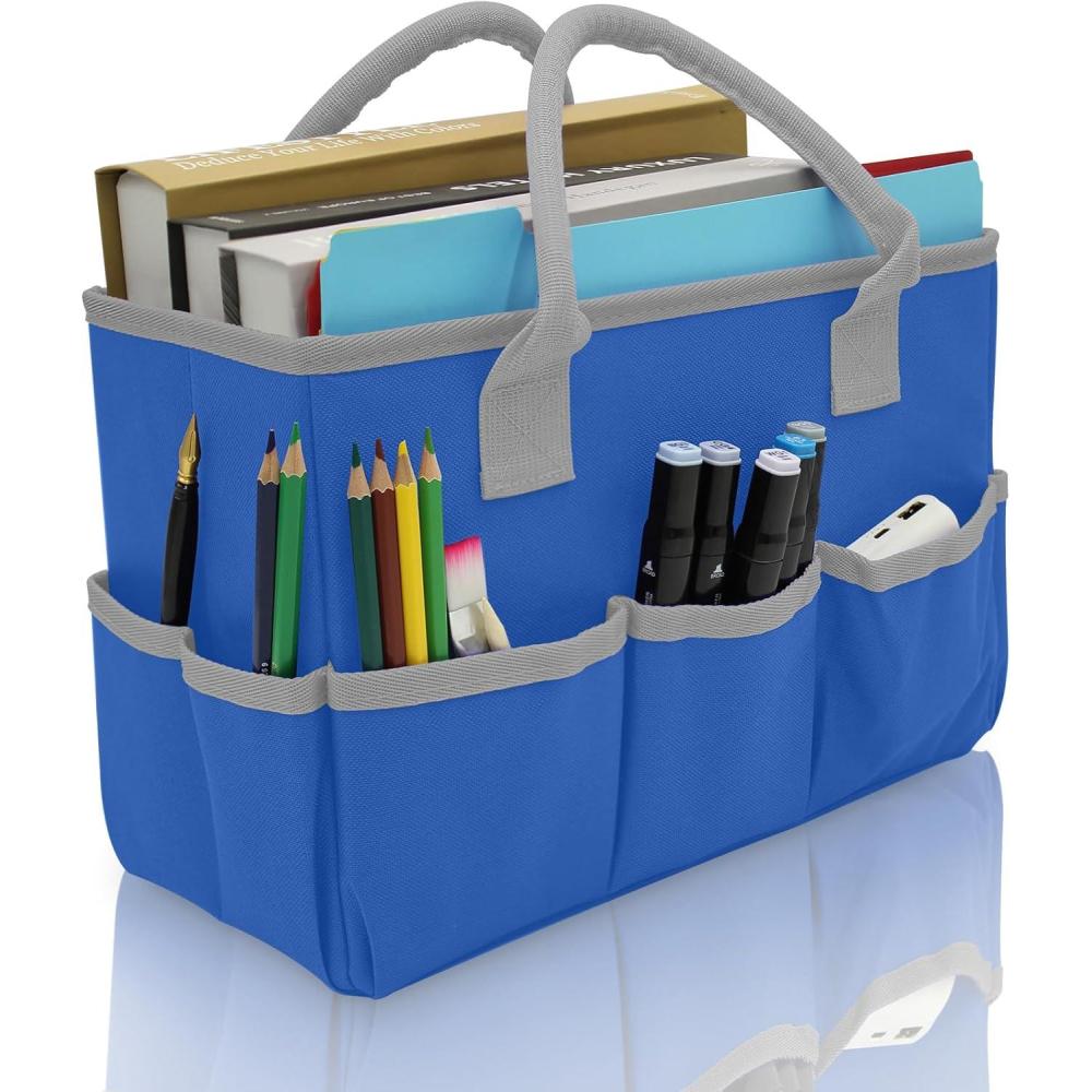 Cupohus Art Organizer Craft Storage Tote Bag with Pockets and Hadles, Oxford Fabric Carrying Caddy for Teacher, Officer, Artist, Students, Traveler, and more – Black with Grey Edge(Blue with Grey)