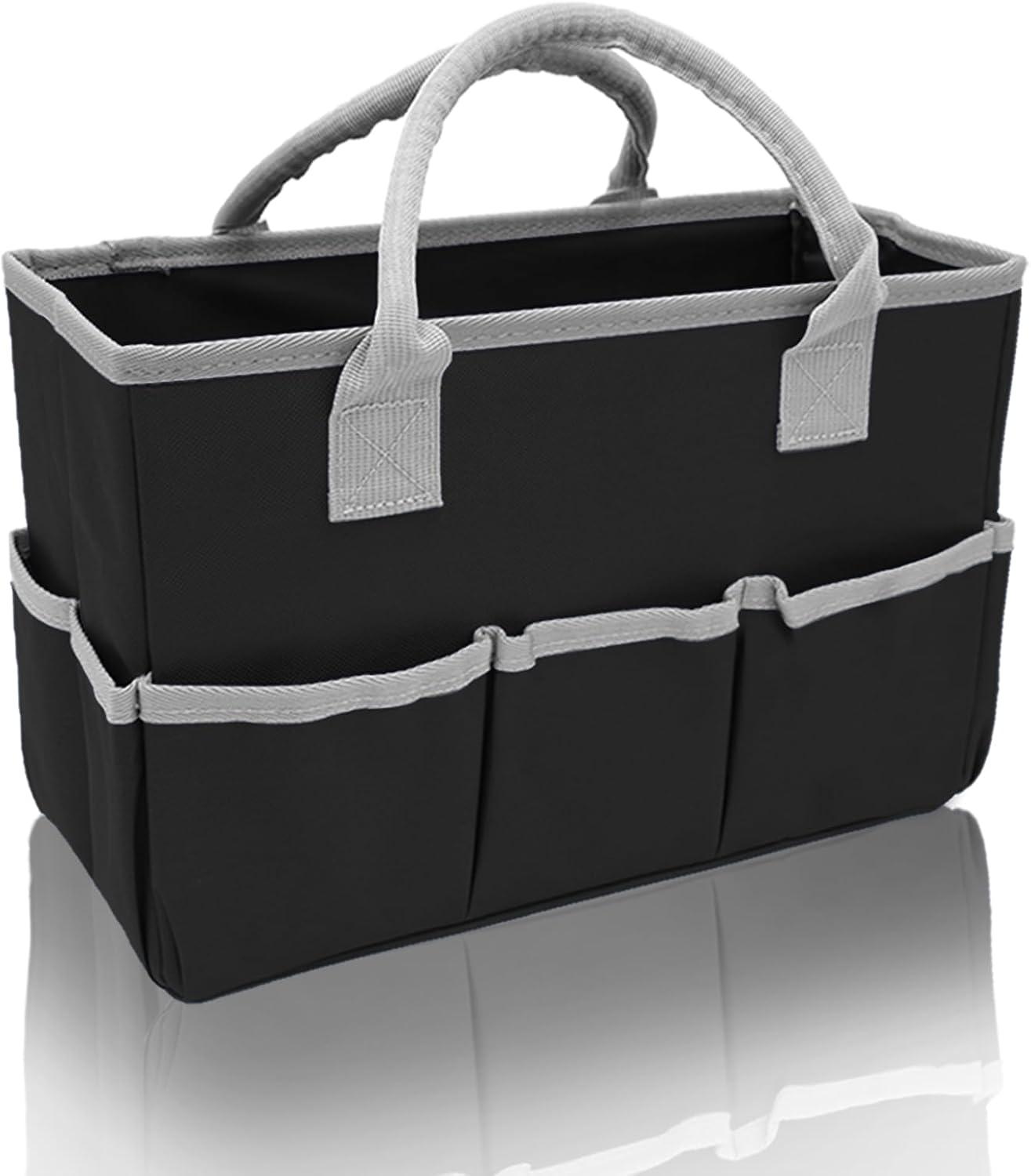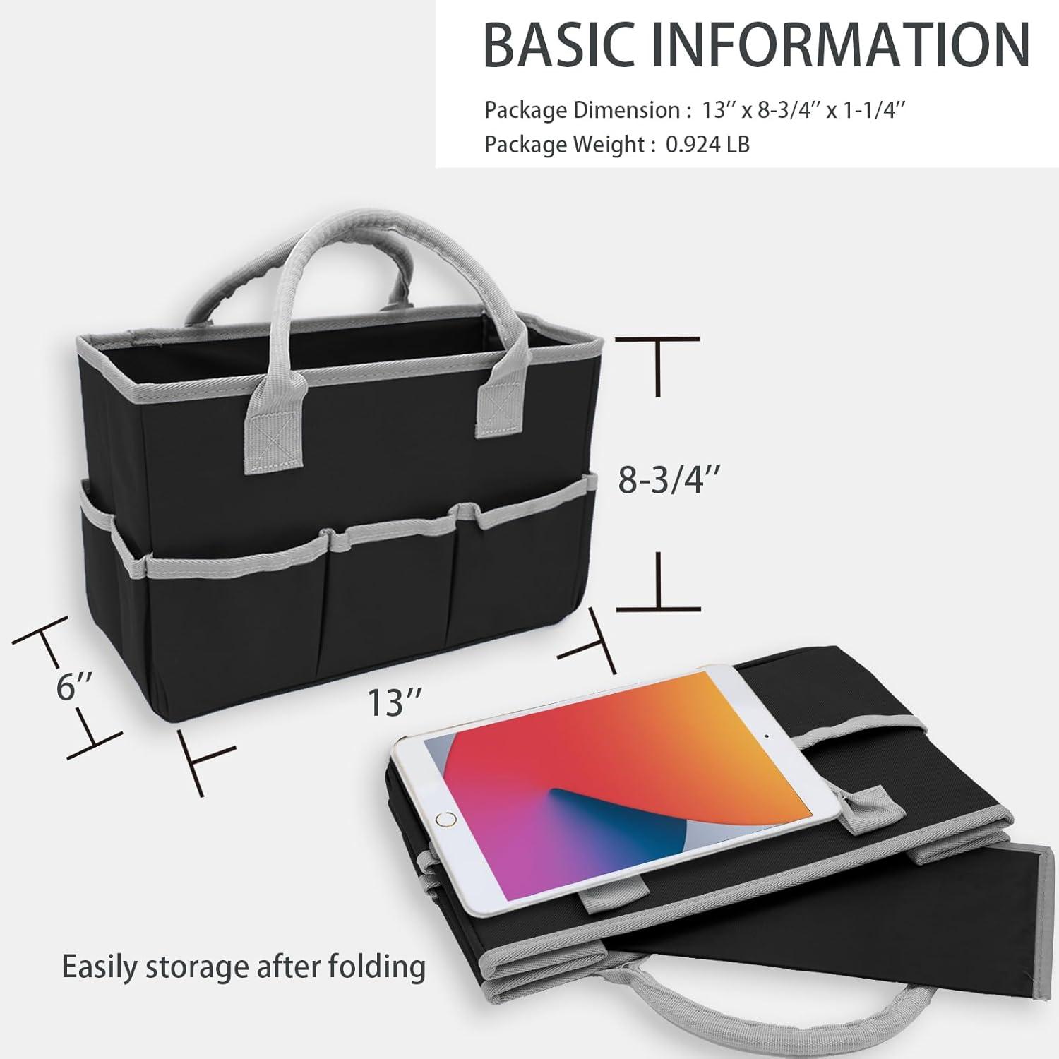 Sufficient Size: Our tool tote has a center compartment that holds about 2.5 gallons of items and outside pockets for your little pencils, pens, scissors, eraser, and more