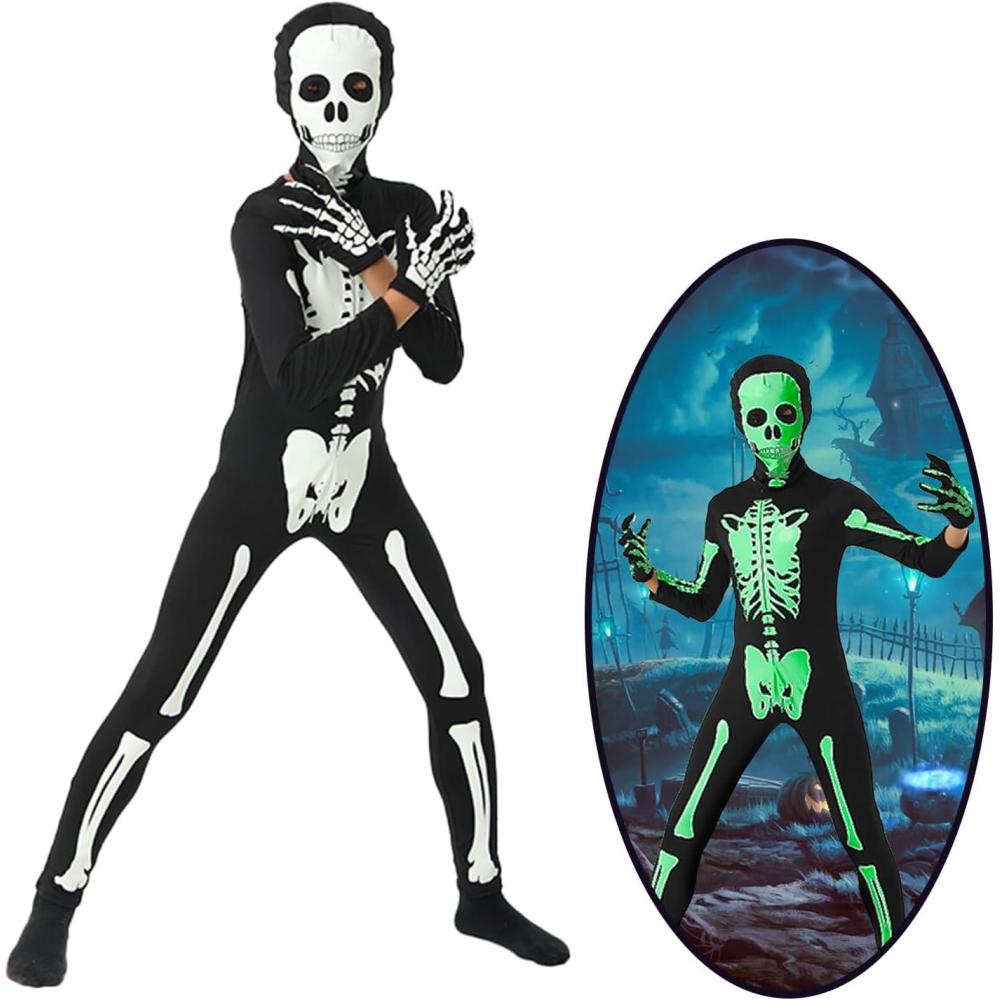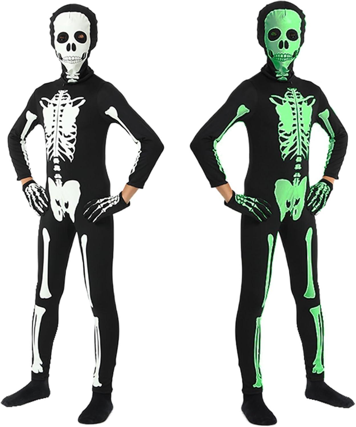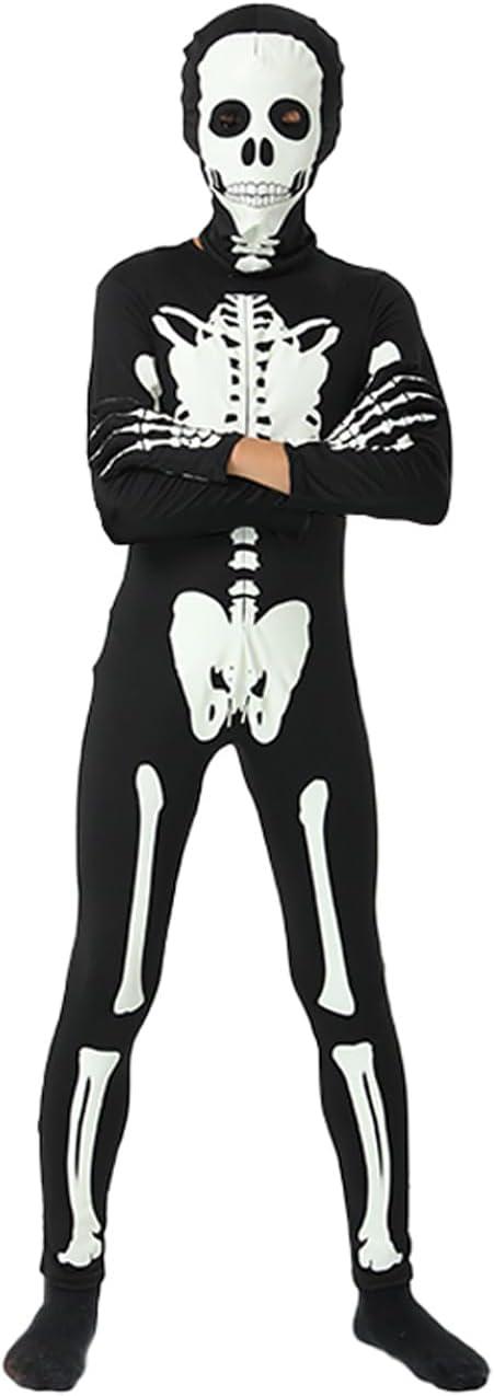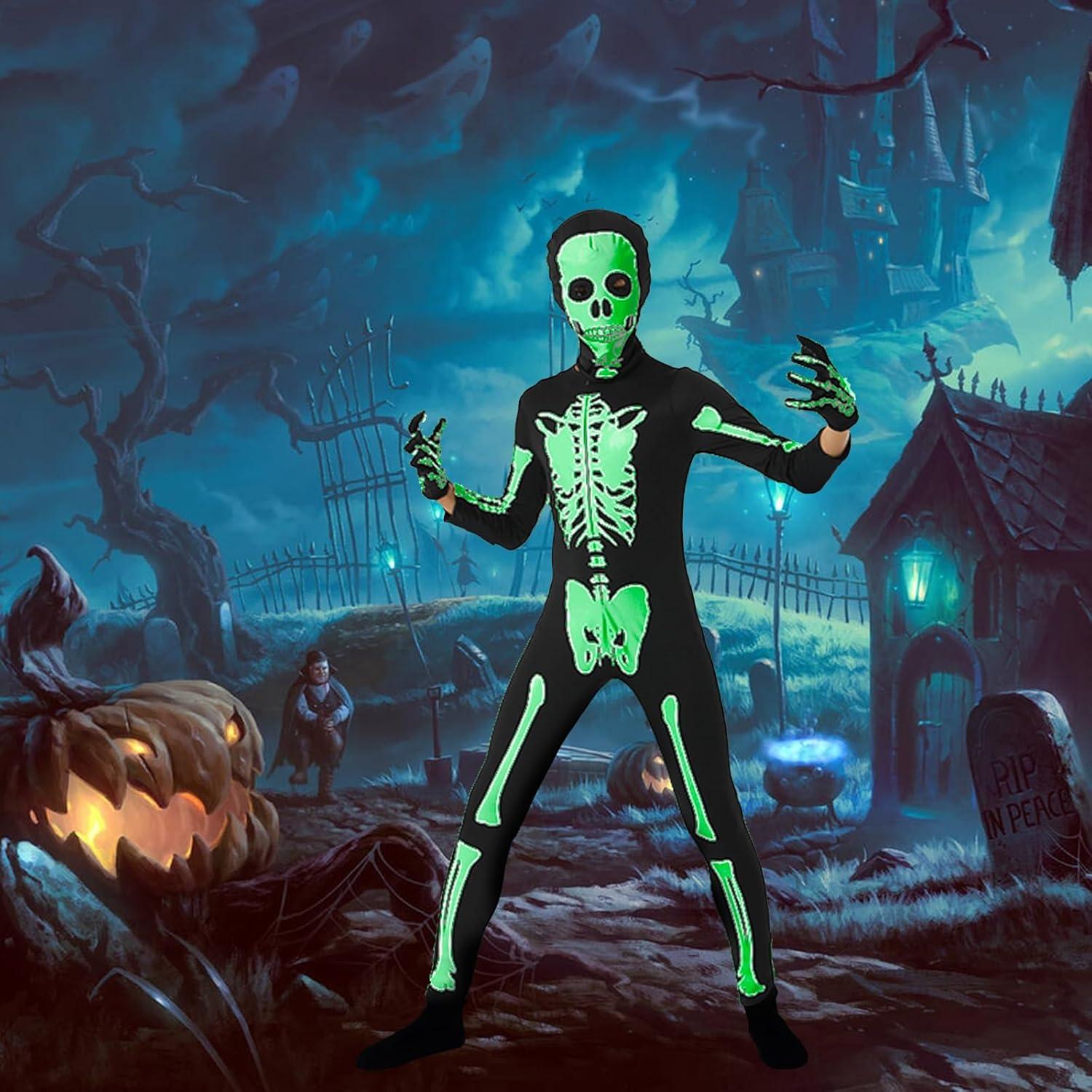 Cupohus Halloween Costume Glow in Dark, Skeleton Costume Bodysuit Jumpsuit – Halloween Outfits, Unisex, Kids([2022 Version]-Glow)