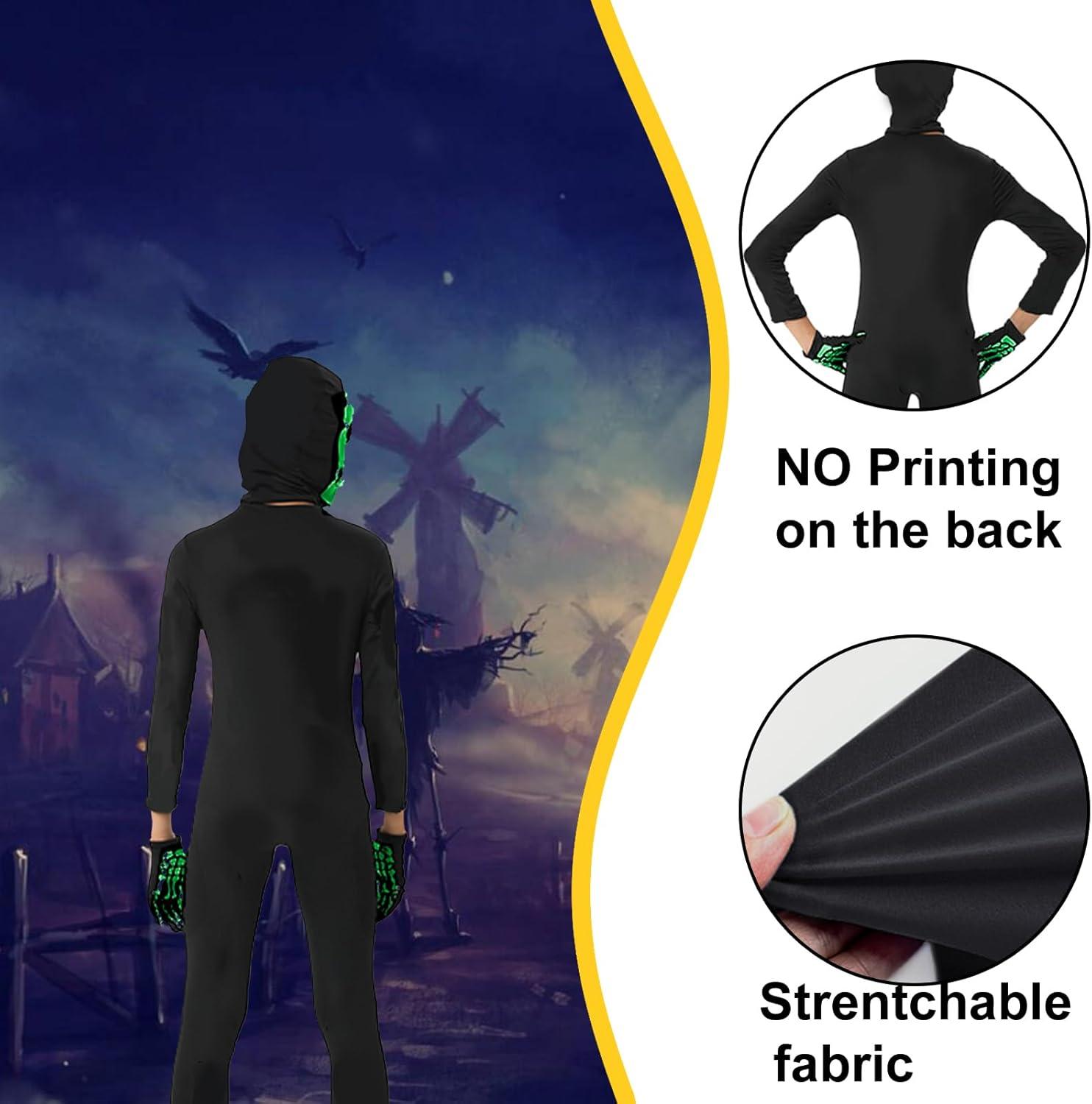 Cupohus Halloween Costume Glow in Dark, Skeleton Costume Bodysuit Jumpsuit - Halloween Outfits, Unisex, Kids([2023 Glow]-Printing single side)