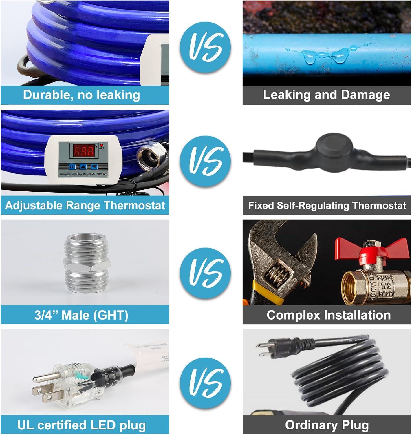 Multi-Scenario & Safe Drinking Water Design: Perfect not only for RV owners and winter campers but also suited for farm use such as chicken coops and stables. Constructed with food-grade materials and self-regulating heating technology, it ensures safe liquid transport and reliable freeze protection in varied outdoor settings