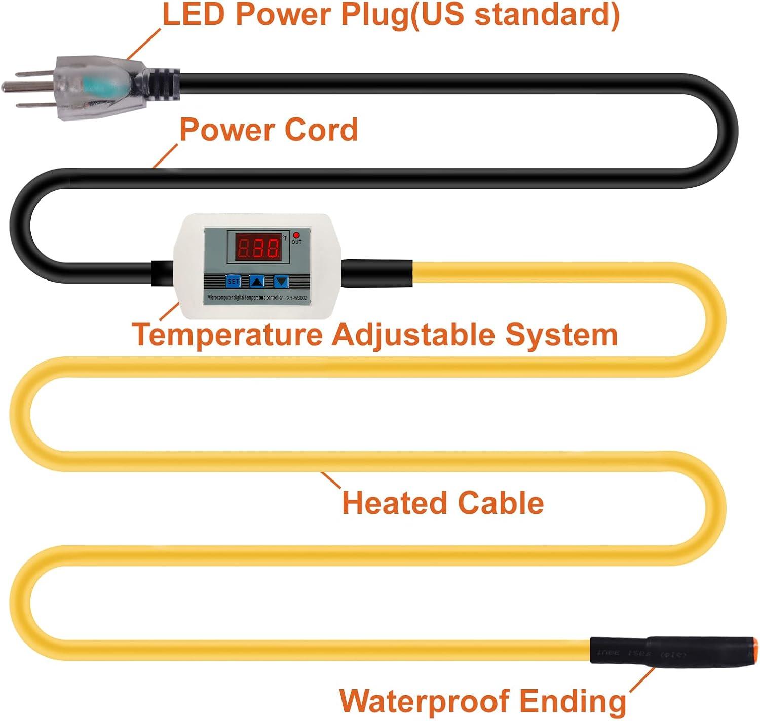 Digital Display Thermostat: Our temperature adjustable system not only adjust the temperature range for starting and stopping heating(37.4°F~59℉/3°C~15°C), but the display reflects the current temperature in real time. And the upgraded temperature sensing probe is also more sensitive than the old version