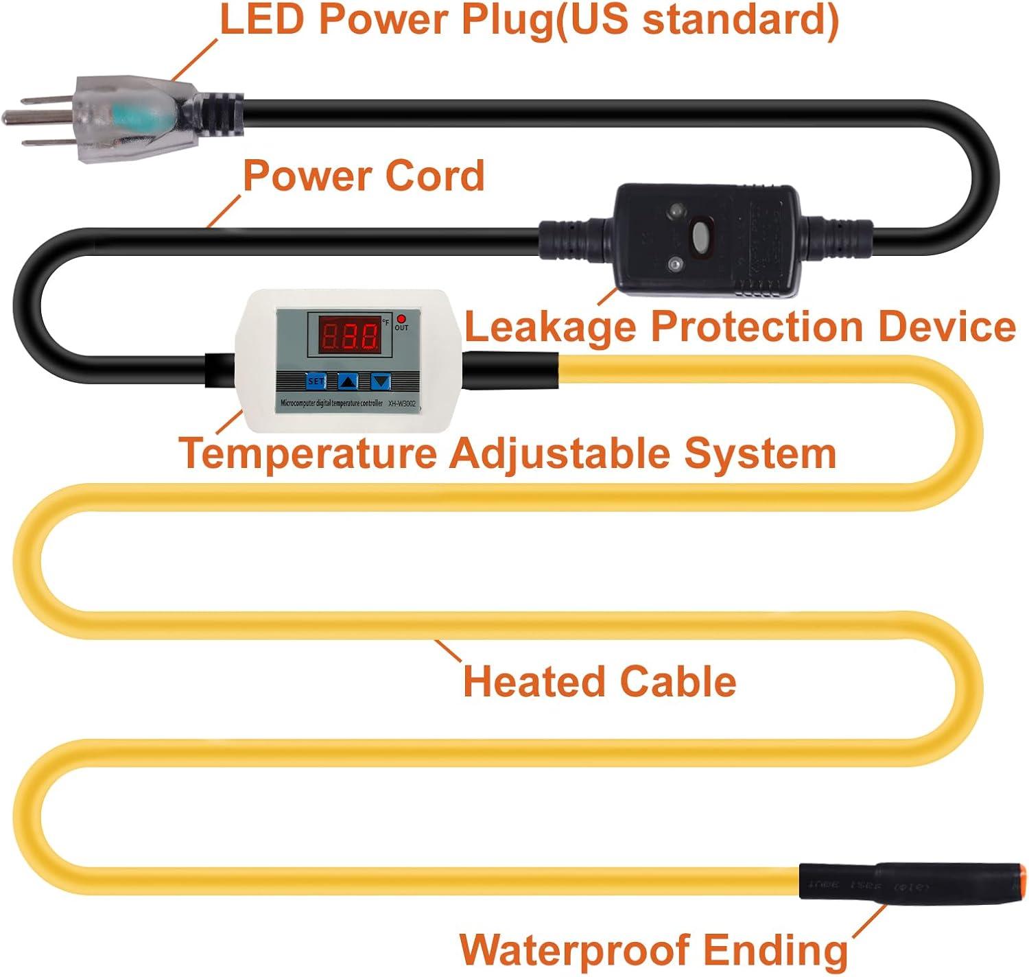 Digital Display Thermostat: Our temperature adjustable system not only adjust the temperature range for starting and stopping heating(37.4°F~59℉/3°C~15°C), but the display reflects the current temperature in real time. And the upgraded temperature sensing probe is also more sensitive than the old version
