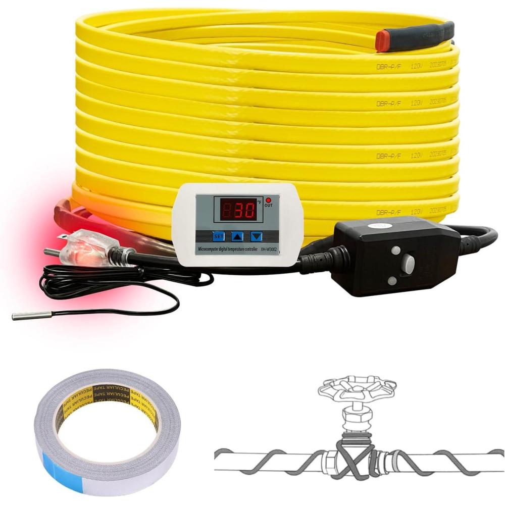 Cupohus Softer Heat Tape for Water Pipes 9FT, Self-Regulating Digital Display Thermostat, Freeze Protection Roof Deicing Cable for Metal, Plastic Home Pipes, RV Water Hose(30FT)