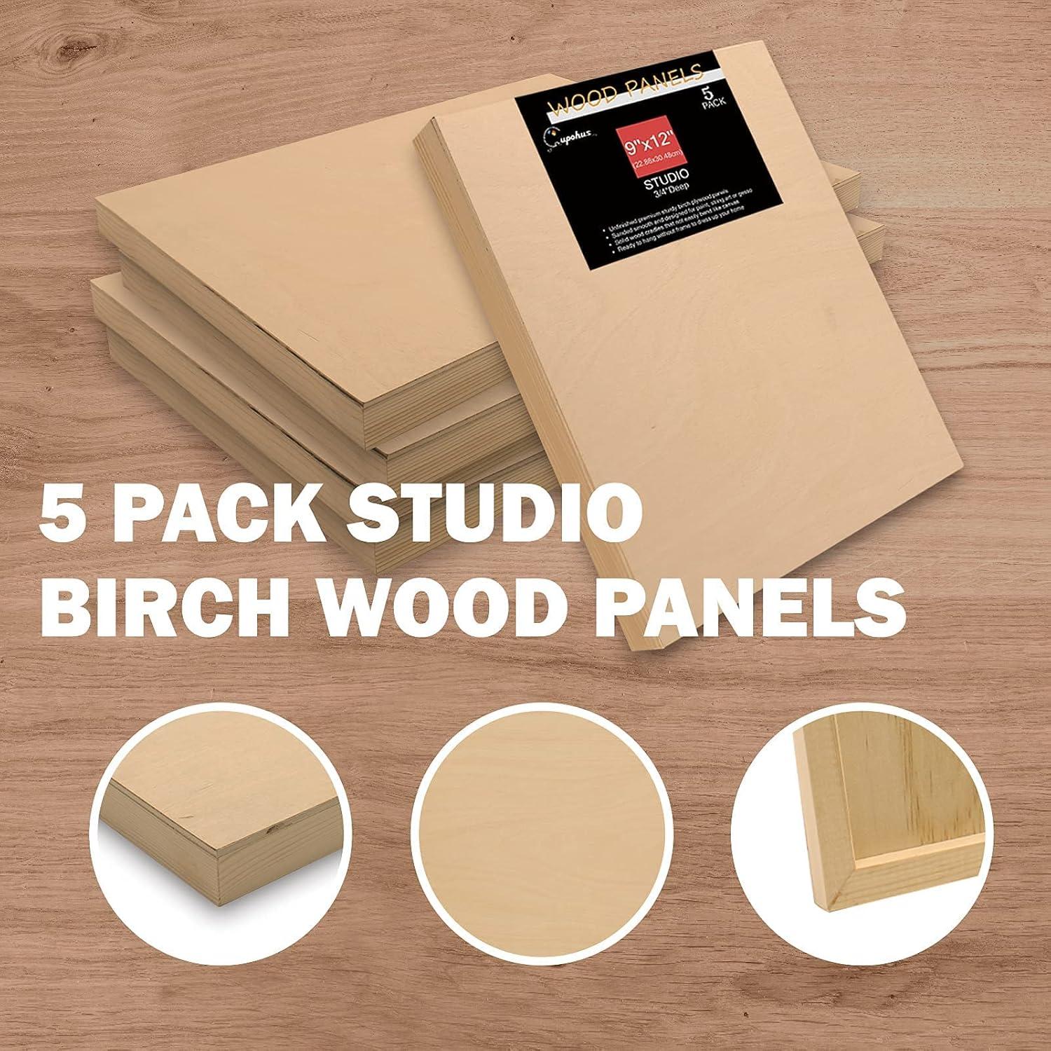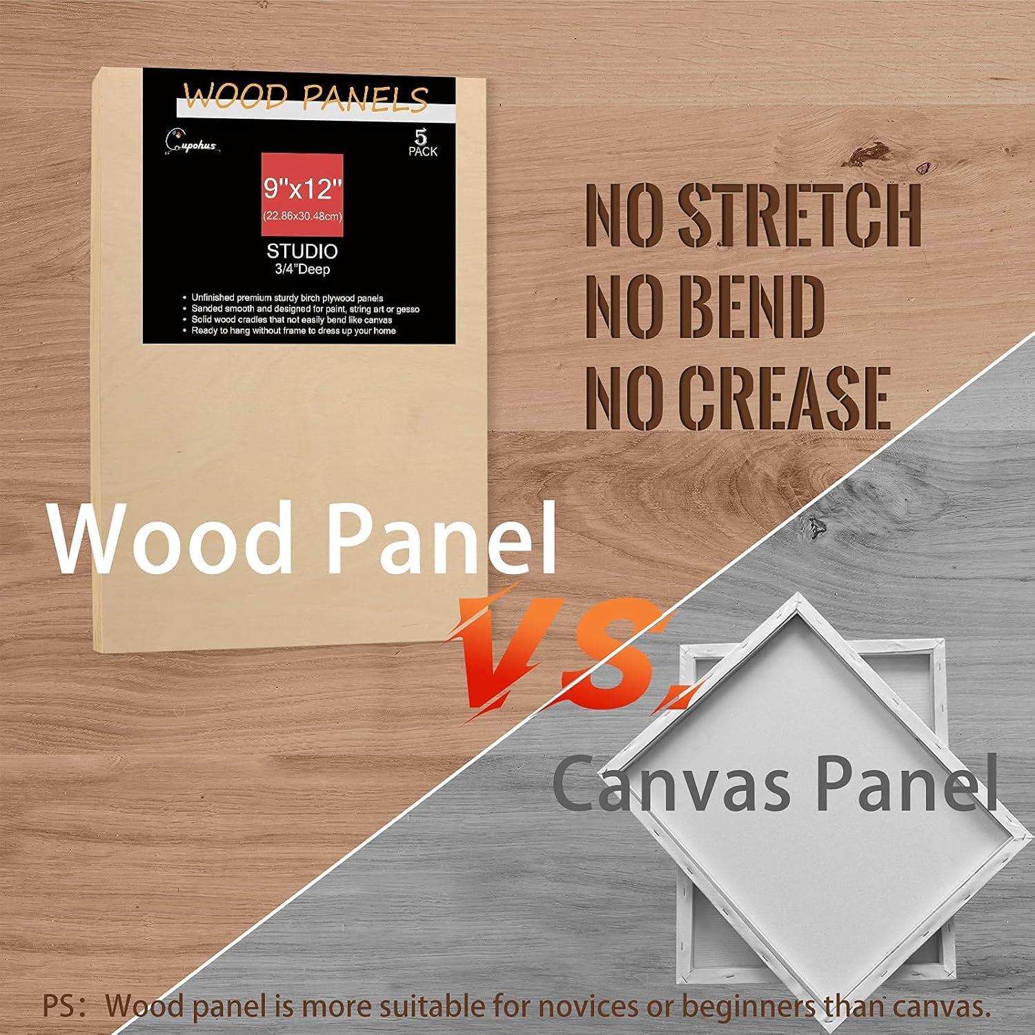 Cupohus Unfinished Birch Wood Boards Canvas for Painting, 5 Packs 3/4'' Deep Cupohus 12'' x 12'' Wooden Cradled Panels for Pouring Art, Crafts, Paints and More(9" x 12")