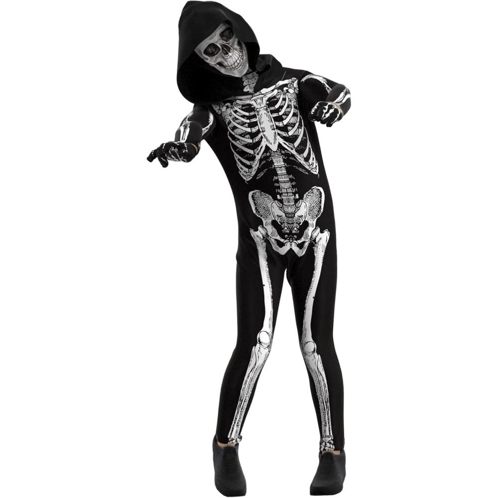 Cupohus' Unisex Jumpsuit - Scary Black and White Halloween Jumpsuit Costume compatible for cos like Skeleton([No foot cover; Include gloves])