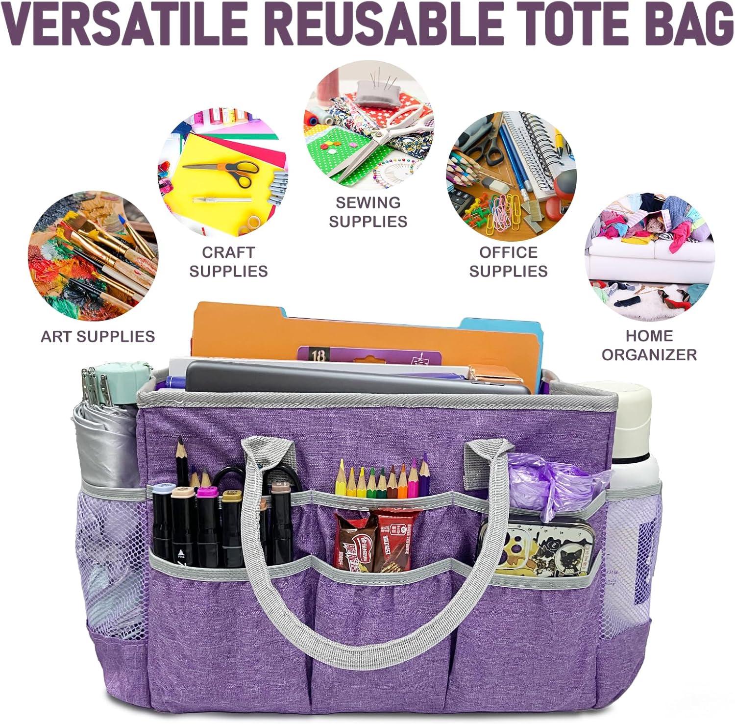 4-Gallon Large Capacity: Our tool tote bag features an open main compartment (no internal dividers) making it easy to store large items. Plus, it has 12 exterior pockets perfect for pencils, pens, markers, scissors, screwdrivers, tape measures, and other small tools